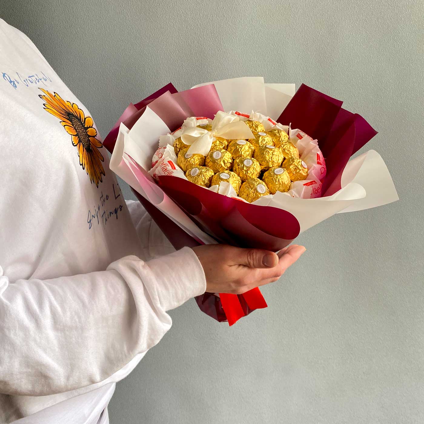 Букет из вкуснейших конфет станет лучшим вариантом для выражения ваших чувств и отношения. Такой букет станет замечательным подарком на Юбилей, свадьбу, день Рождение, 1 свидание, 8 марта.