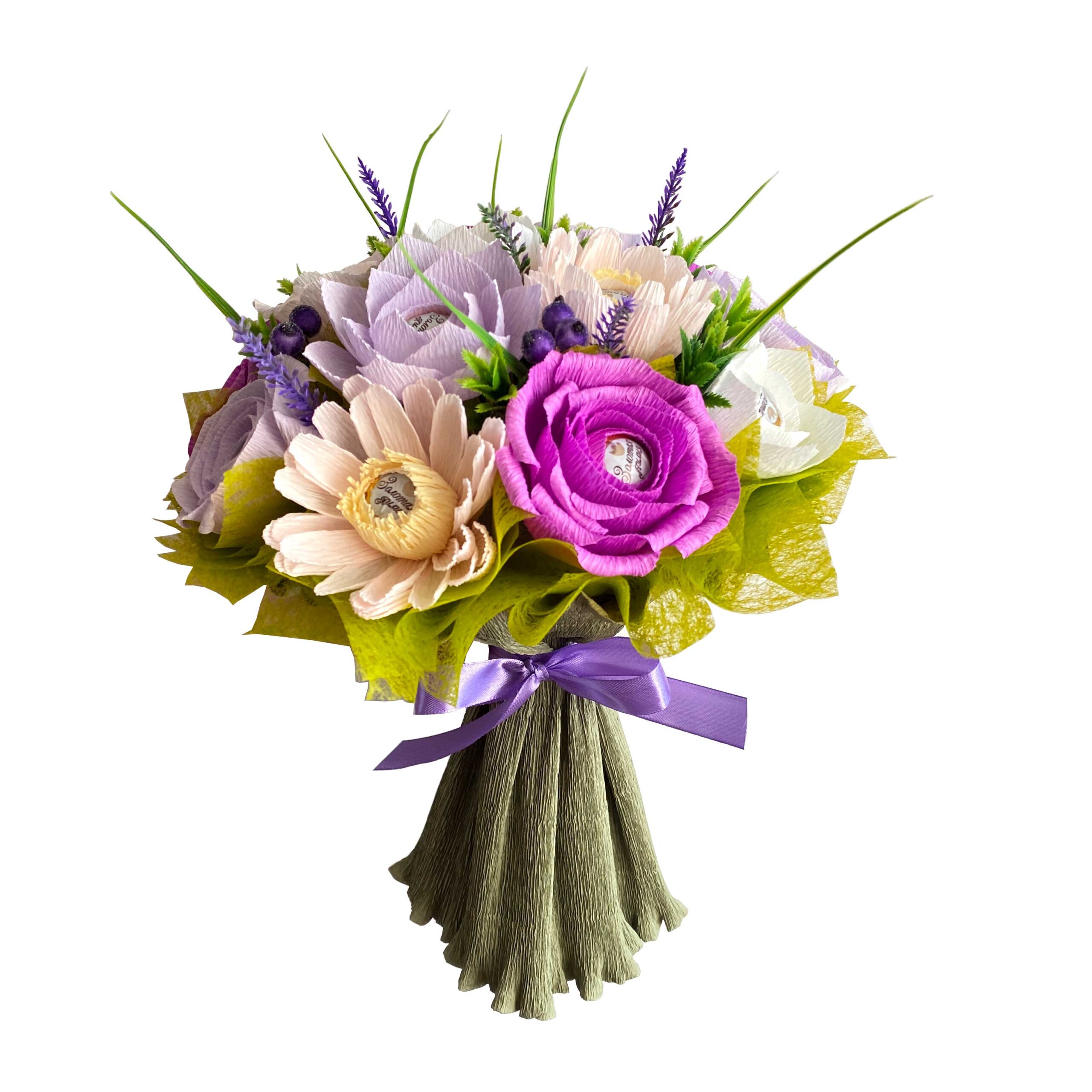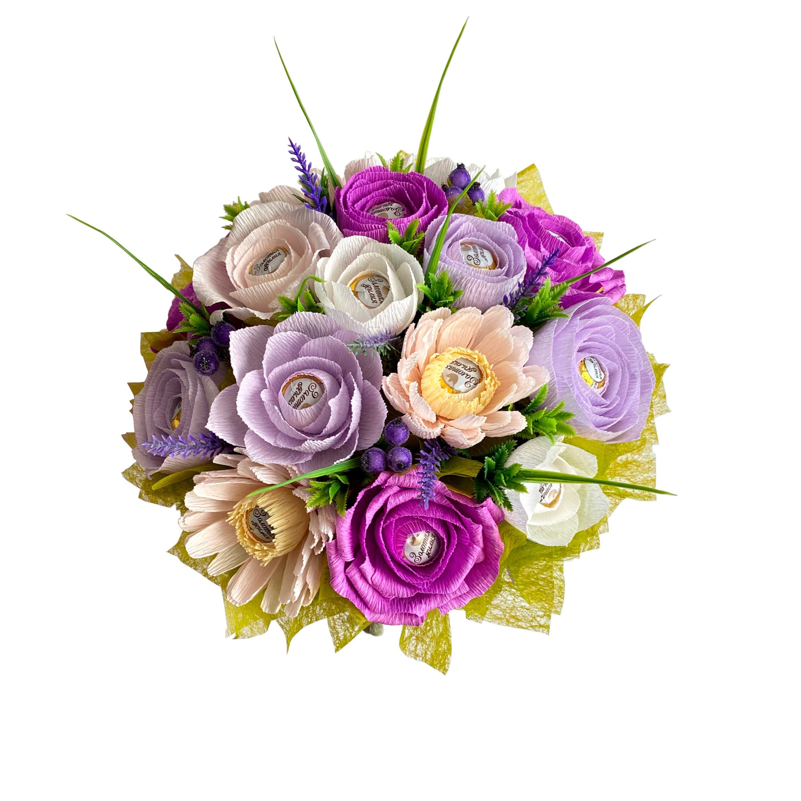 Сладкий и красивый букет из конфет «Фантазия» не останется не замеченным и будет долго радовать его обладателя. Цвет и наполнение можно менять по Вашему желанию.