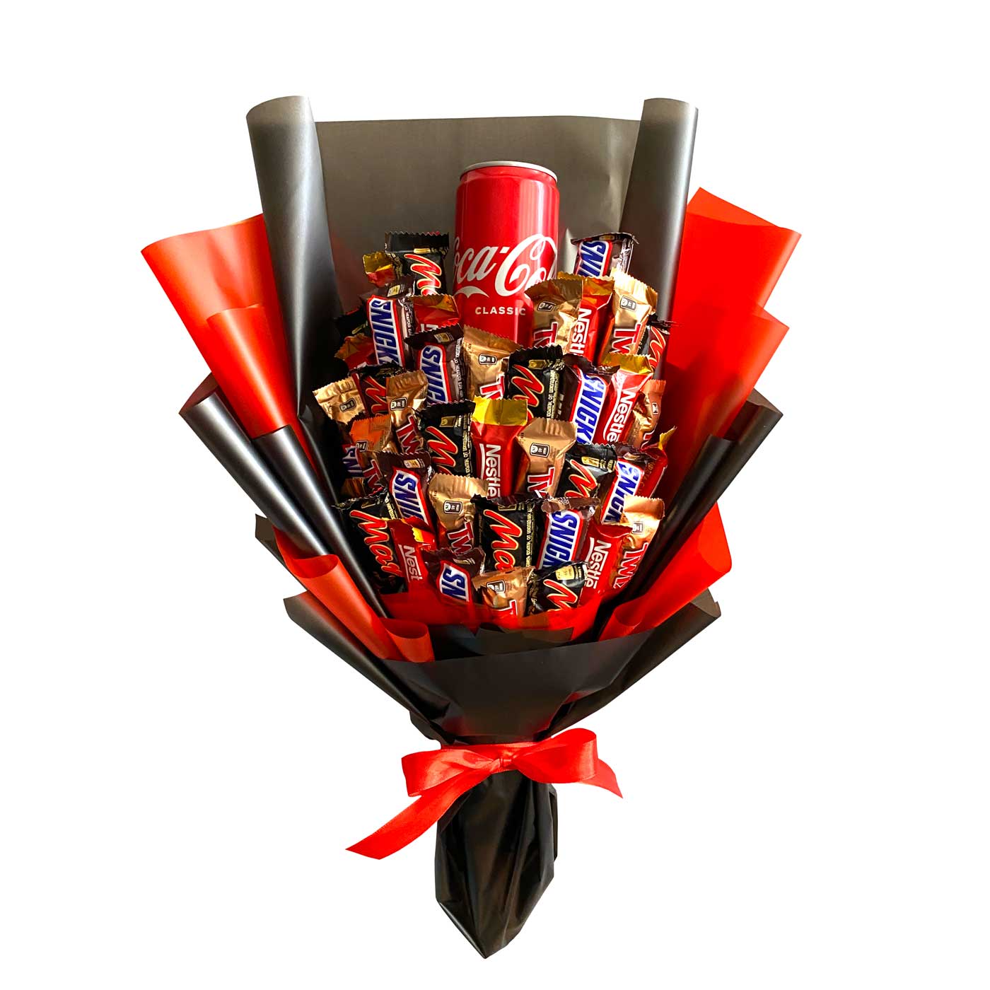 Букет из сладостей «Кредо» — это стильный подарок для сладкоежек. В составе Coca-Cola, батончики Mars, Snickers, Twix и конфеты Nestle. Такая композиция станет отличным выбором на день рождения, праздник или дружескую встречу. Сладкий букет удивит оригинальной подачей и порадует вкусами.