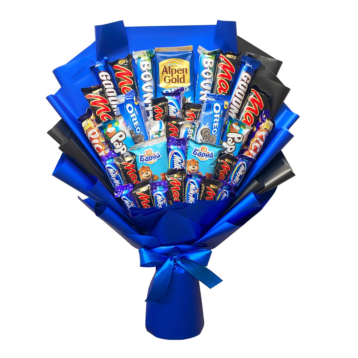 Букет из сладостей «Мистерия» — это яркий и насыщенный подарок, который объединяет лучшие шоколадные сладости. Он выглядит эффектно и сразу создаёт праздничное настроение. Такой букет порадует и ребёнка, и взрослого сладкоежку.