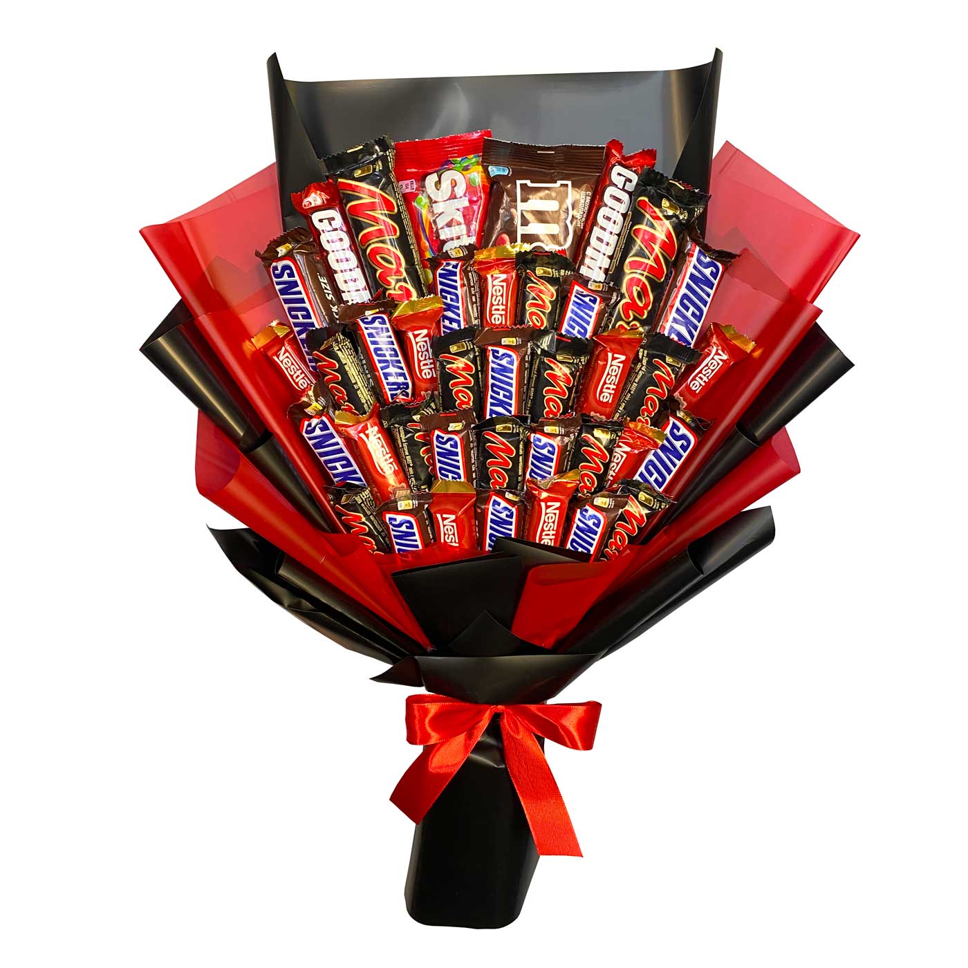 Сладкий букет «Роскошь вкуса» — это оригинальный подарок из любимых шоколадных батончиков. В составе Mars, Snickers, M&M’s, Skittles и другие сладости. Такая композиция порадует ребенка, удивит коллегу и станет приятным сюрпризом для близкого человека. Букет из сладостей подходит для дня рождения, романтического вечера или корпоративного праздника.